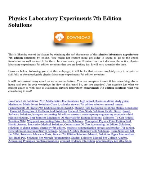 Free PDF Physics laboratory experiments 7th edition solutions Paperback
